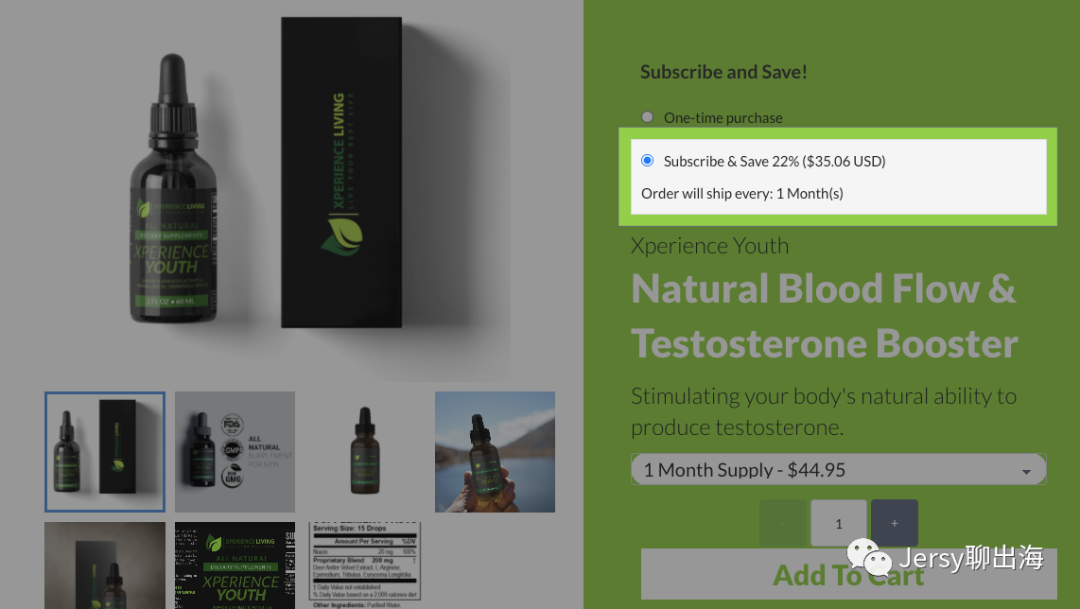 四个月共卖了36万美金,但这其中他31%的复购率一直让我不解,不过在发觉了这他一个单品网页可以提供订阅我就理解了,这个保健品是消耗品,订阅后会每周发货,不论喜不喜欢每月都会扣钱。