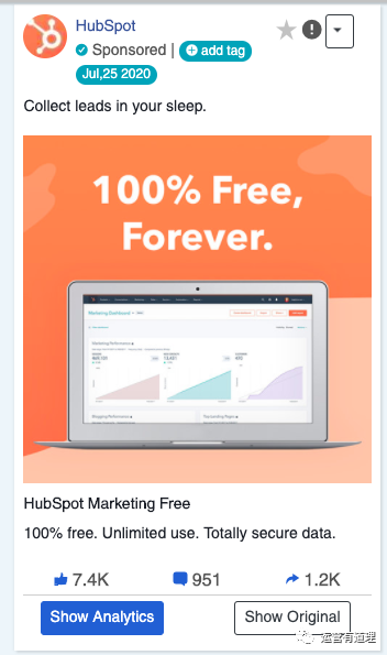 4)点击查询结果中的某一个,可以对广告进行详细的分析,如下图(点击 show analytics):