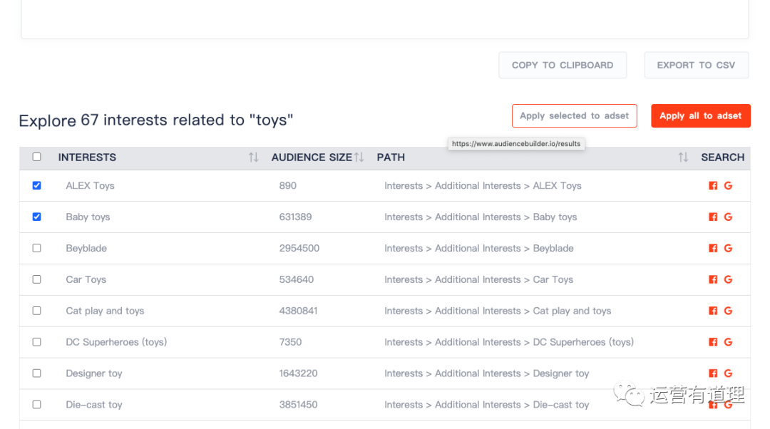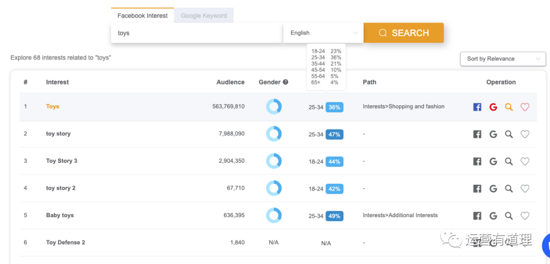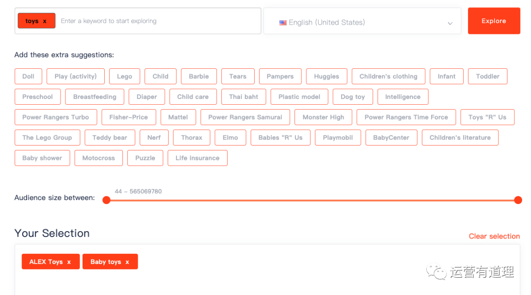 该工具优点是:免费、且兴趣数量不限制、同时还提供关键词建议。很适合FB自投非专业选手使用。