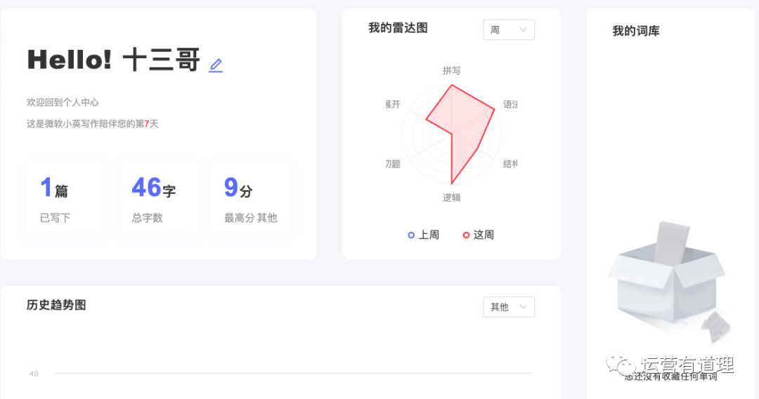 内容纠错、词语替换,更优秀的表达只需一键修改。从句统计、篇章结构,详细的评分报告带你深入解析文章精彩与不足