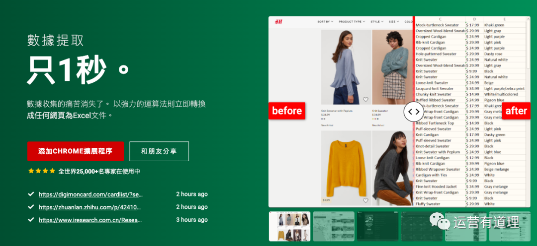 这个工具的大部分功能是免费的,但说实话,易用性差了些。我也是找到了工具的作者,才研究清楚怎么用的。工具是一个Chrome插件,下载网址: