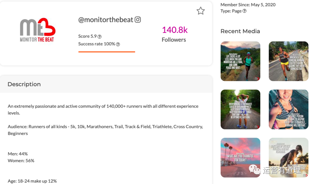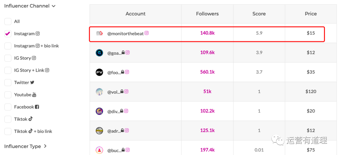 1)小编准备找一个 ins 平台,和体育相关的,英语国家的网红,根据条件搜索后,发现如下所示,第一个,有14万粉丝,合作只需要$15
