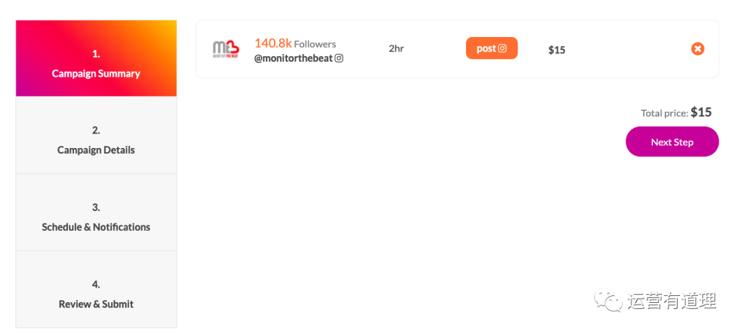 3)点击上图的“Add @xxx to Campaign ",就可以进入购买环节了