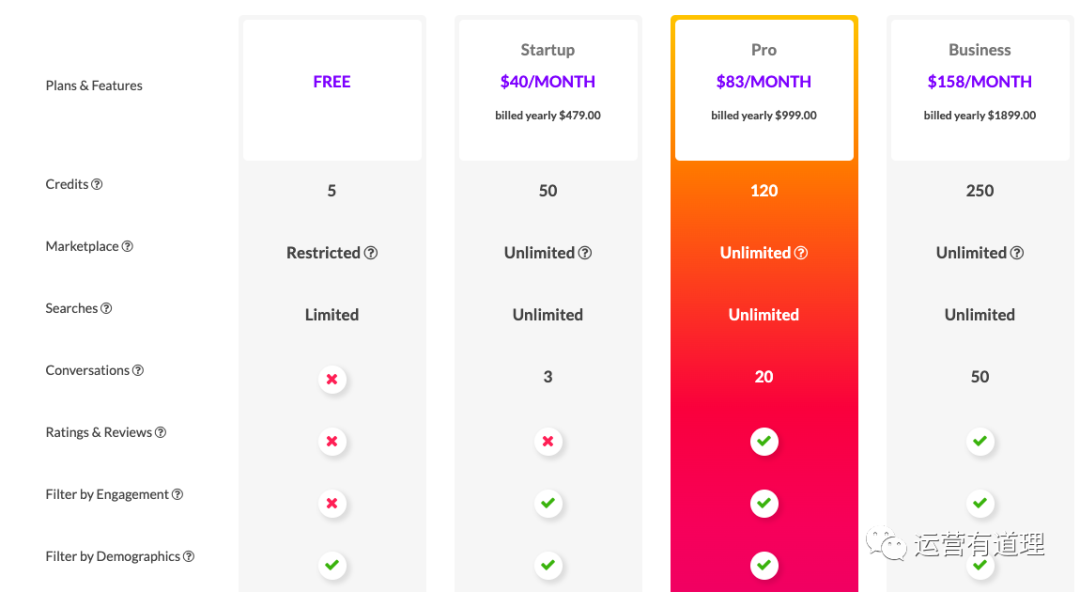 顺便说一句,该网站的付费版本也不贵,是按解锁网红信息付费的。平台不额外收取其他费用。