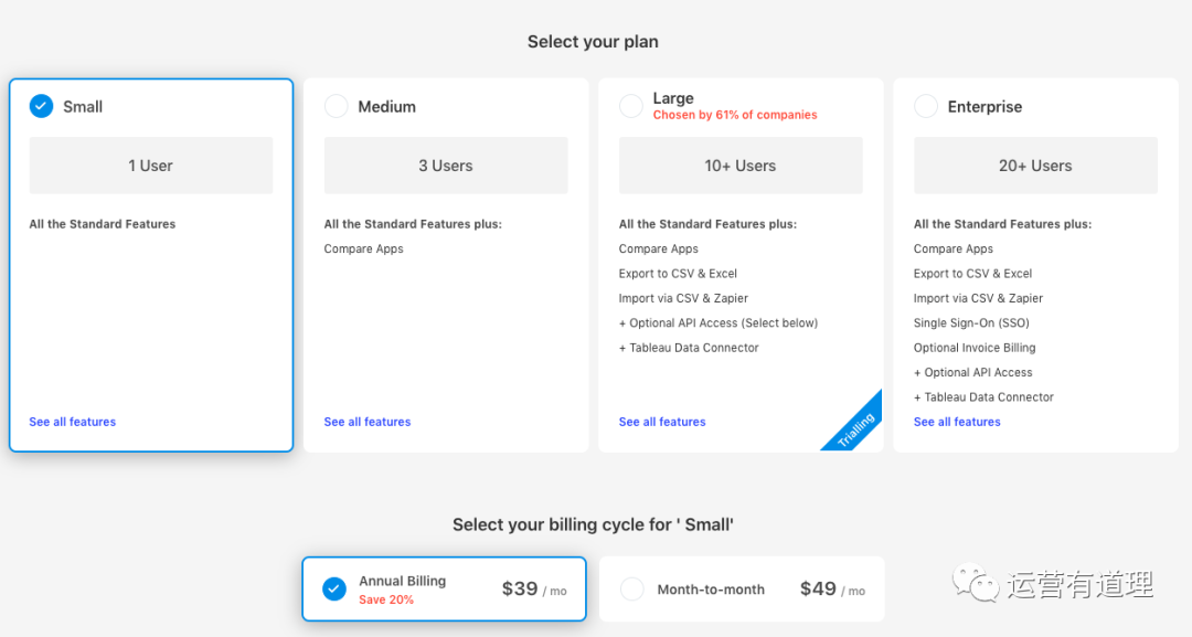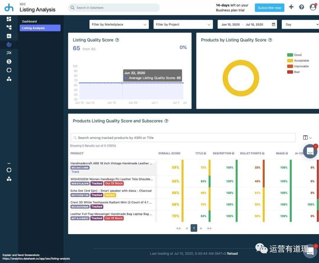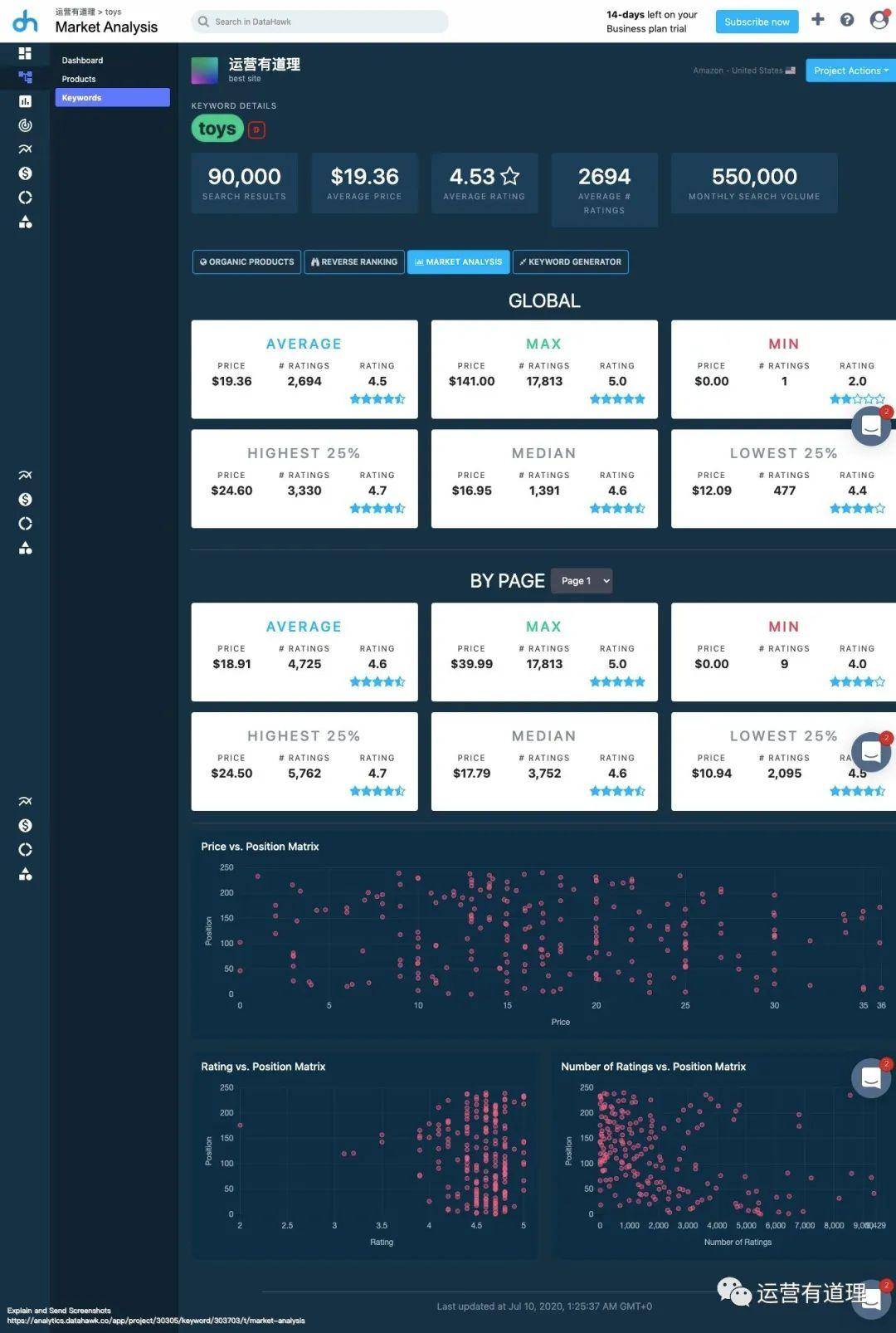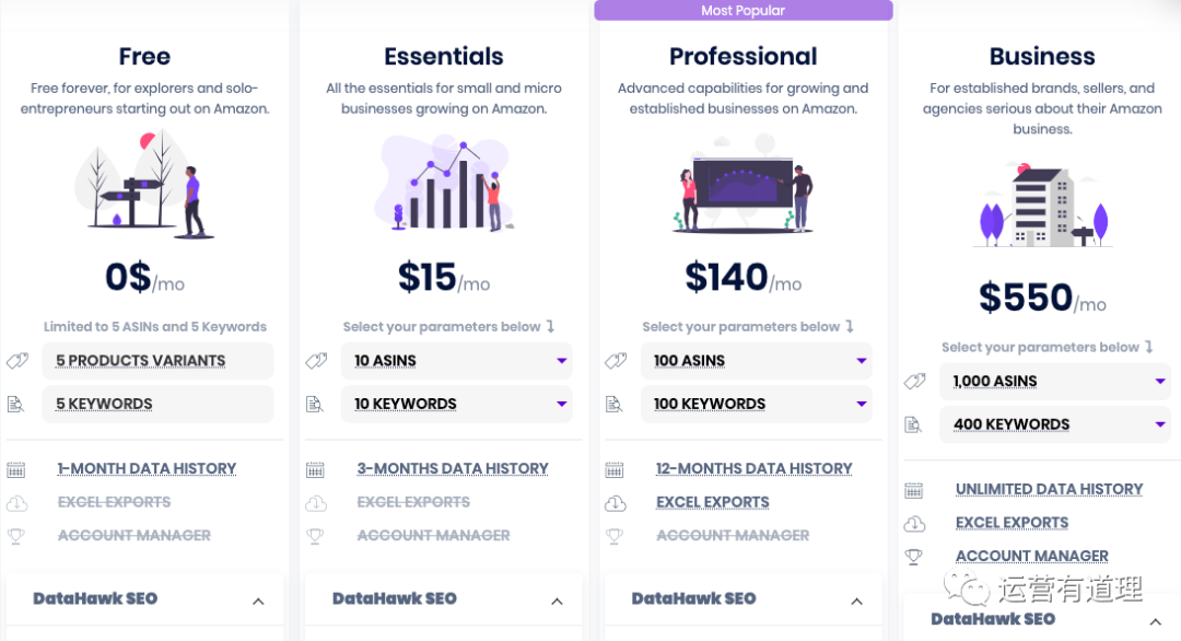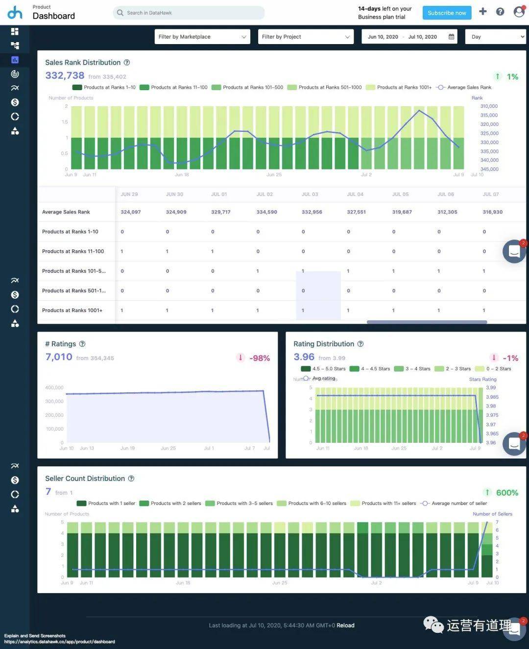 这款产品,可以免费试用所有功能14天,之后转为免费版本。免费版本和收费版本的功能很类似(除了部分报表无法导出),唯一控制的是产品跟踪和关键词跟踪数量。收费版本,目前来看,也还是可以接受的。