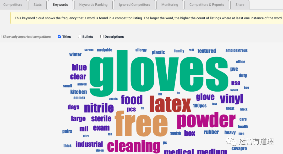 3)分析中词频出现的最多关键词,考虑在产品标题和描述中添加强调。