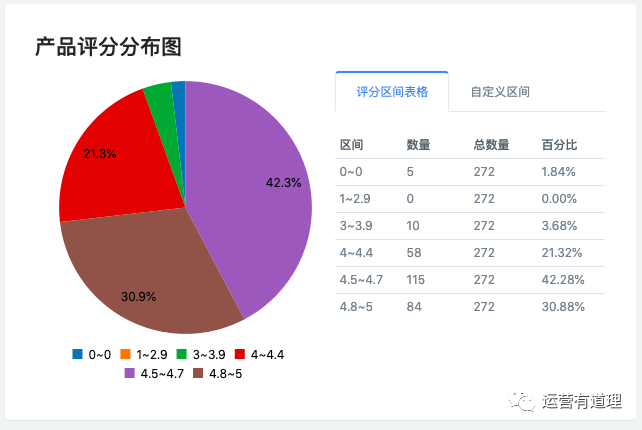 你知道,人的情绪是比较复杂的。给你打3星,写的评价内容有可能都是正面的。打四分,有可能非常客观的写了一堆对你不利的问题。通过这个看板,可以比较宏观的看到客户的真实反馈。