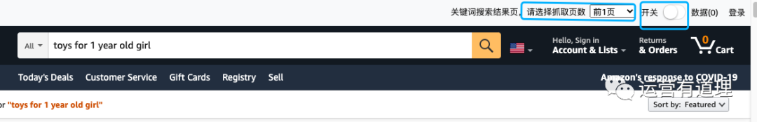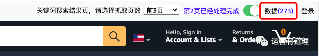 安装好插件,在亚马逊搜索你想抓取的“关键词结果页面”,点击抓取即可。如下图,输入搜索关键词,选择想抓取的页面,点击开关即可完成页面的抓取。特别注意:多选择几个页面,如果选择1页,瞬间就完成抓取了,会让你以为“开关”总点击不了。