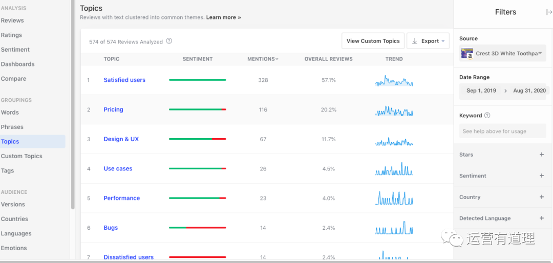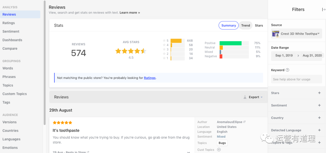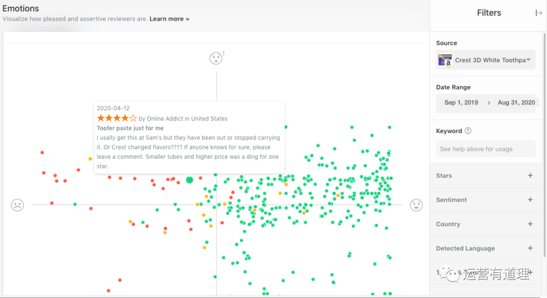 这是小编发现的最好的给卖家用的亚马逊评价分析工具,最出色的地方在于:
