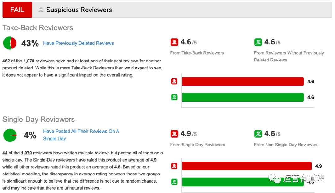 仅仅使用该工具,还不足以达到小编前面提到的目的。所以,这里不得不祭出另一款免费的工具:该工具重点在于发现和找出虚假评价,从如下12个方面对卖家某个商品的评价进行分析