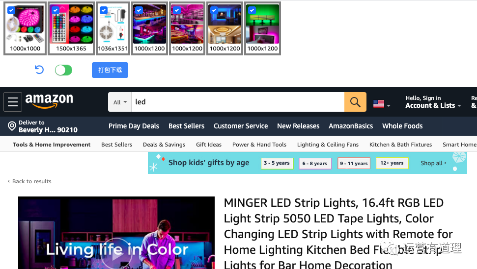 装了这个插件后,打开一个亚马逊产品页面,效果如图,就可以直接点击“打包下载”了