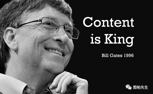Content is King这是Bill Gates在1996年在一次访问中提高到的。