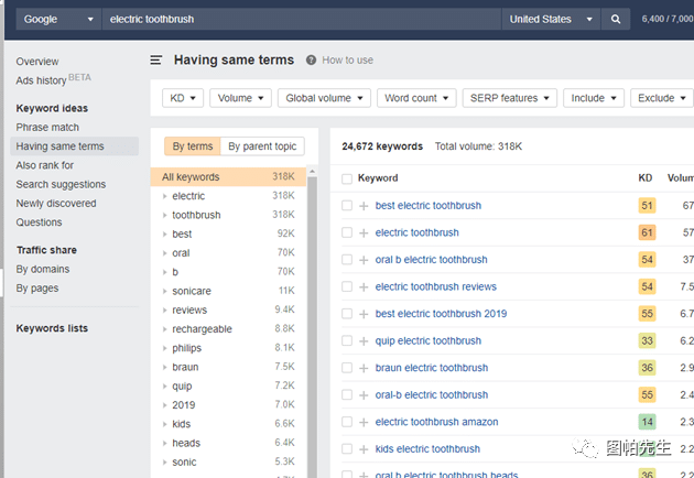 简单来讲,我会用ahrefs查关键词搜索量和难度,atp(answerthepublic.com)扩词。