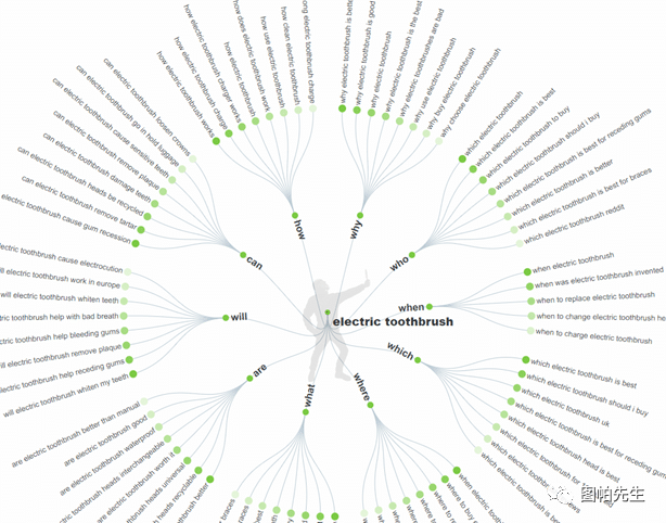 比如electric toothbrush电动牙刷,加疑问词,怎么用电动牙刷、怎么清洁电动牙刷、为什么要用电动牙刷、什么是电动牙刷;加介词for ,女士适用的电动牙刷、老人适用的电动牙刷、with 带xxx功能的电动牙刷……