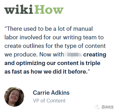 另外wikhow,之前了解到一个批量生成内容的工具,里面竟然有wikihow的内容部门的高层做的testimonial,证言