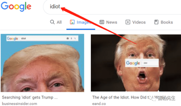 比如,我在谷歌图片搜索idiot这个词,出现的却是donald trump的图片。(虽然我不知道他是不是idiot :))