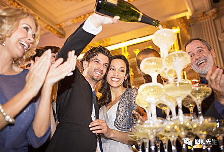 我经常会把这个过程比喻成香槟塔,权重像香槟一样,从第一杯,慢慢流到下面有关联的杯子。