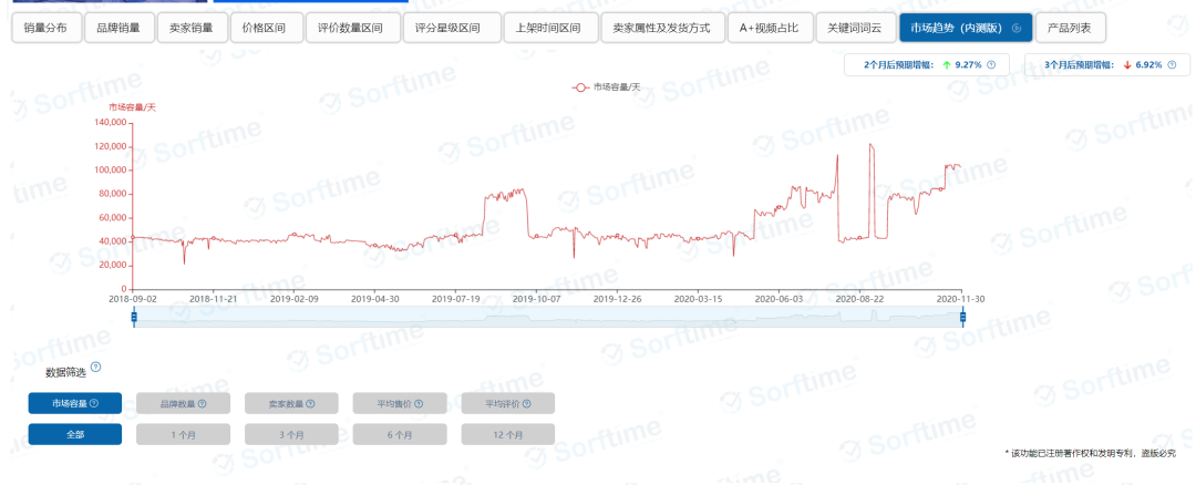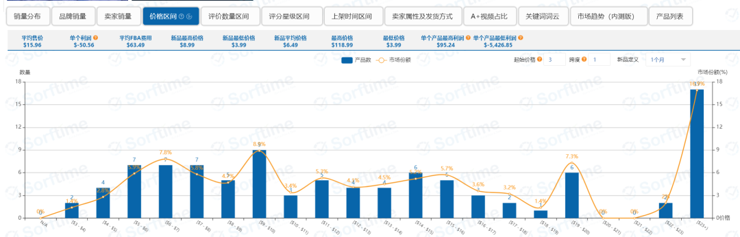 为了让各位老铁更深入的了解这款插件,下面给大家展示一下除了这个类目的销量分布情况以外,其他11项数据指标的具体呈现情况图示: