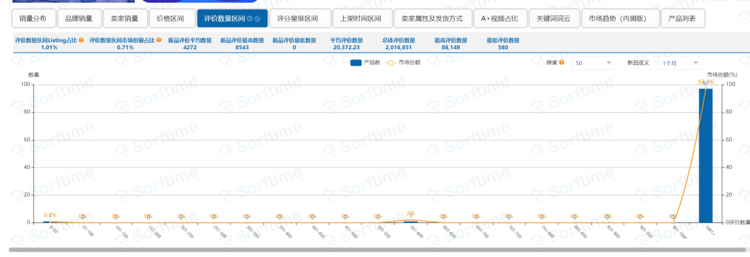 评价数量区间图表↑