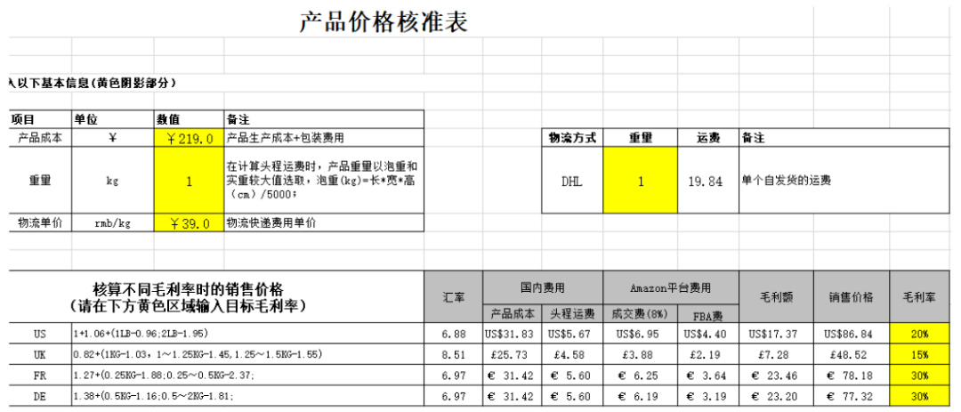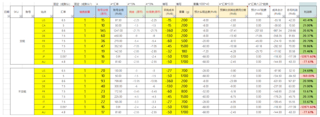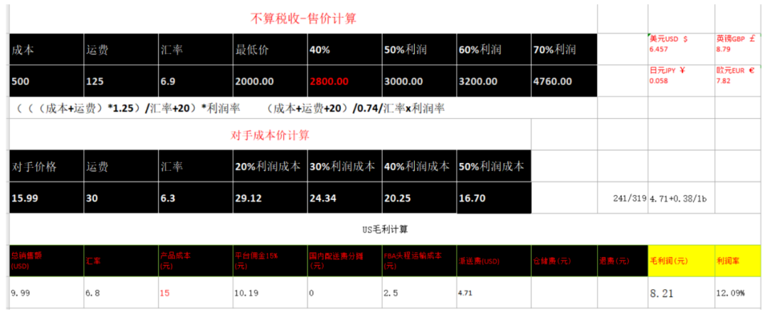 美国站利润计算表,提高你对产品的剖析程度并进行相关优化。