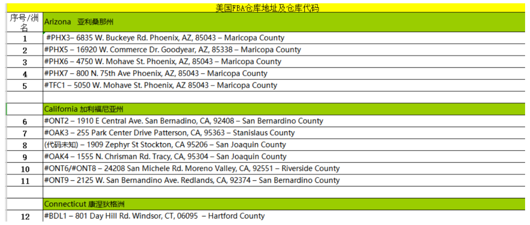集合亚马逊美国FBA仓库地址,让卖家朋友更方便快捷。
