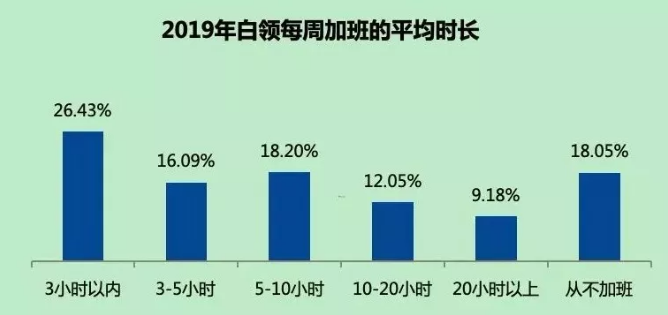 关于加班时长,网络上也有针对这一项的调研,下面是具体数据: