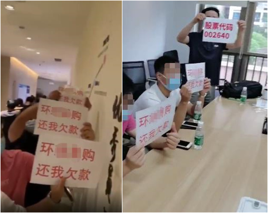 时间回到2020年9月中旬,当时在各大跨境卖家社群里充斥着关于“深圳跨境大卖环XX购遭供应商集体上门维权讨债”的视频、图片,想必各位卖家对下面这些图像仍记忆犹新。