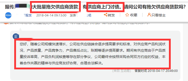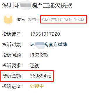 冰冻三尺非一日之寒,早在2018年4月,就有网友爆料称,环XX购大批量拖欠供应商货款。从网友的爆料内容可以发现,有供货商反应其2017年的货款都未付完。