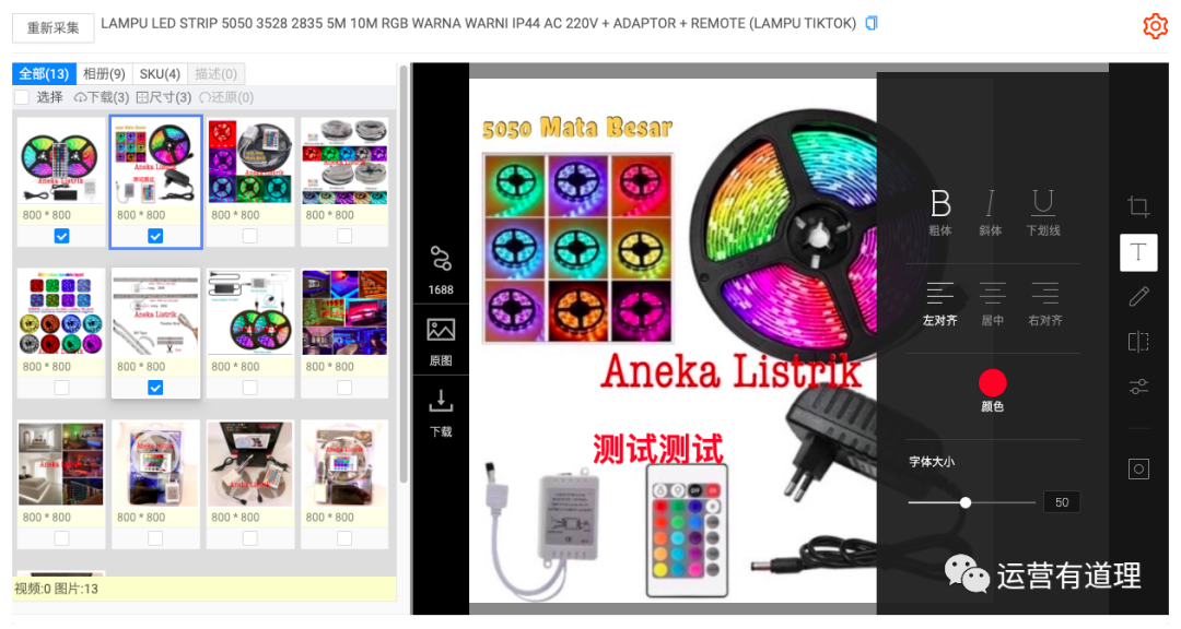 亚马逊、速卖通、eBay、1688、虾皮,lazada,淘宝和天猫8个电商平台下载图片甚至视频,并可对图片进行批量修改、打包下载