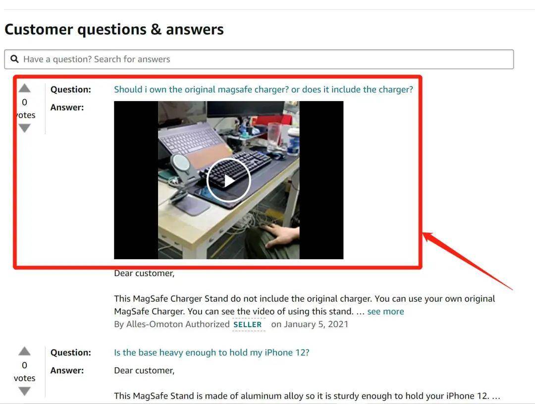 有卖家反馈,自己Listing的Q&A版块也有收到买家主动上传的视频回复,这也说明该功能并不是专为卖家设计的。