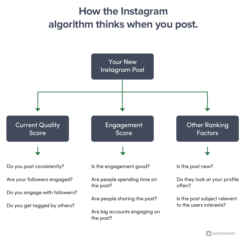 图注:Instagram算法的工作原理(来源:aaronward)