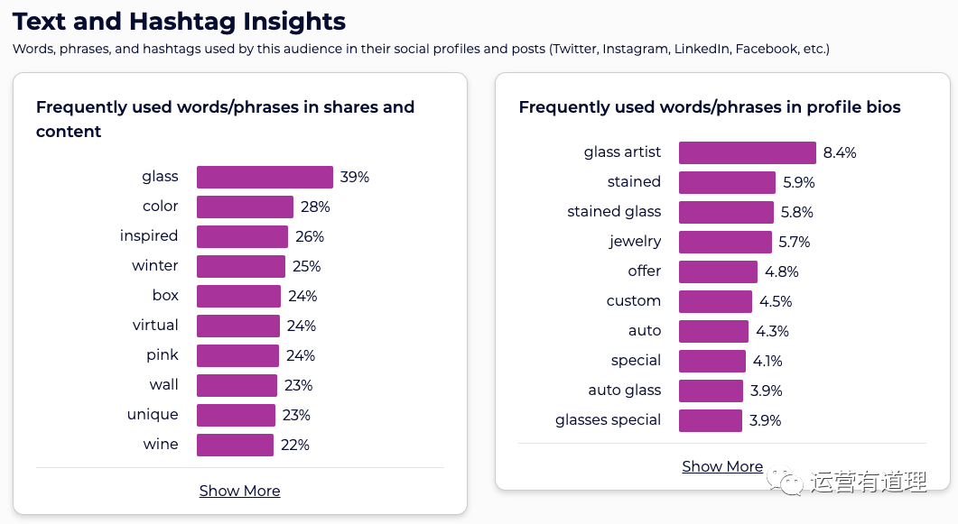 这是一个输入关键词、选择国家后,即可分析对该关键词产生兴趣的人群画像。我理解它的原理是用爬虫爬取各大社交网站的帖子、用户签名、hashtag等数据后做综合分析。