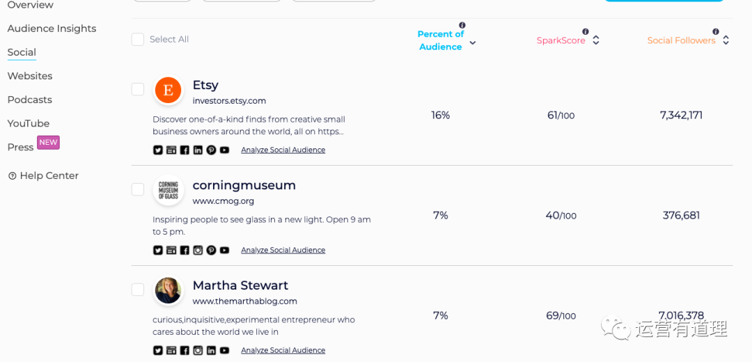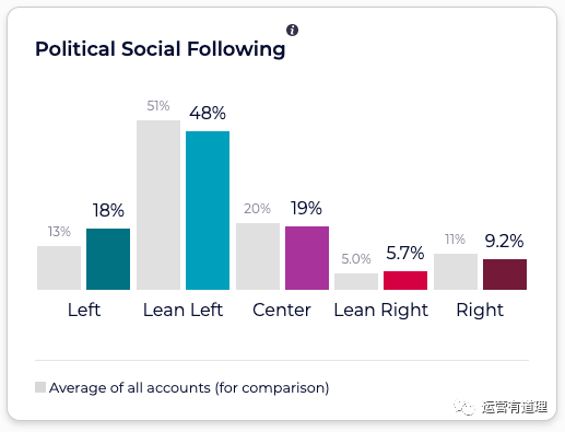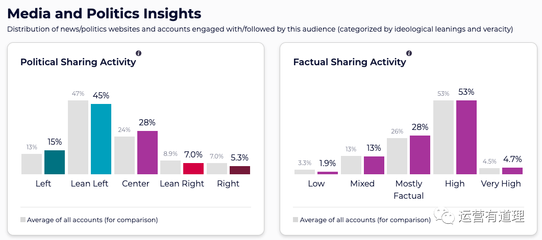 这个工具分析的侧重点在于,这些人群在社交平台的行为、兴趣点、态度(甚至分析是美国的左翼还是右翼人士)
