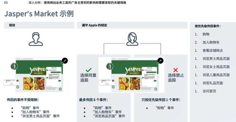以Jaspers公司为例,如果用户同意追踪,可最多传回8个事件,如果用户选择禁止追踪,只能按优先级传回1个事件。