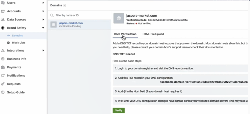 建议所有广告主在Facebook商务管理平台中验证网域