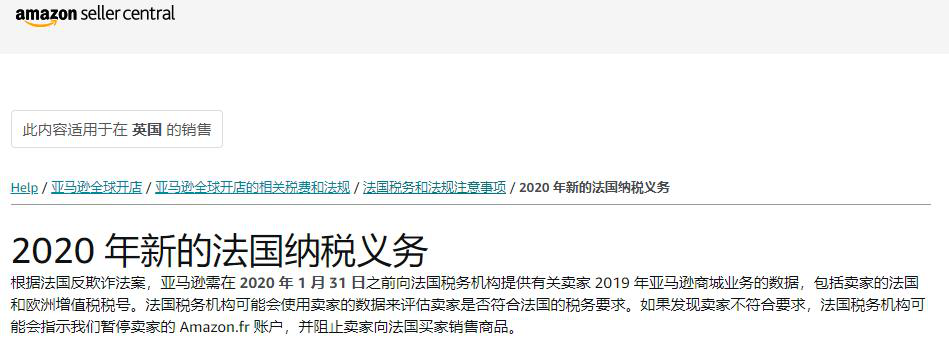 而亚马逊也在去年年初更新过有关法国纳税义务的通知。