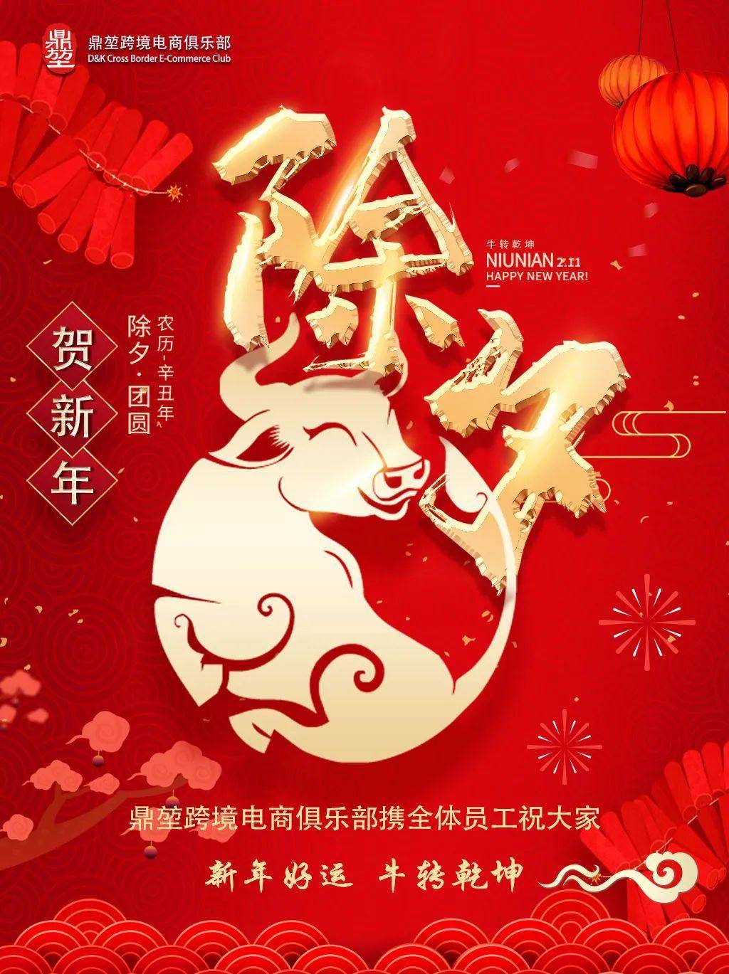 鼎堃跨境电商俱乐部祝大家除夕快乐!牛年大吉!