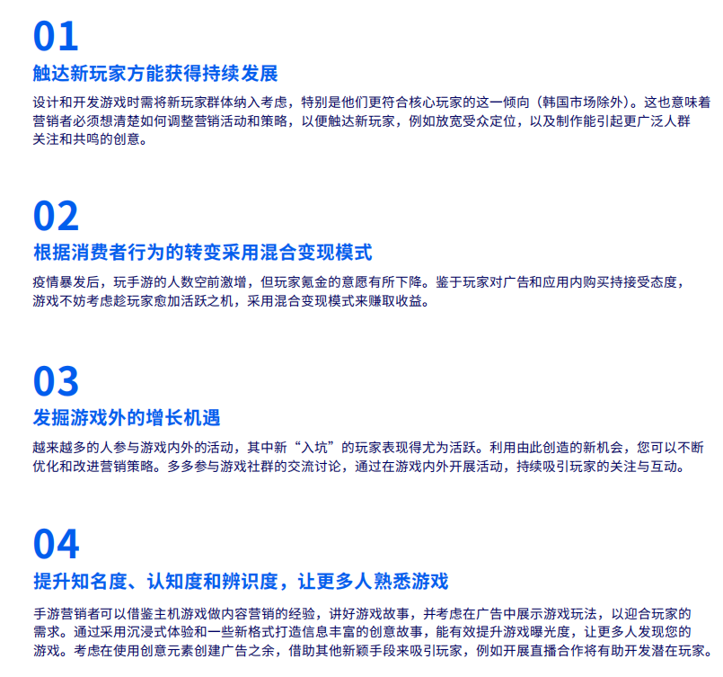综上所述,facebook给大家总结出来以下四点建议、希望为您优化游戏的开发、增长和变现策略提供建议,更多报告的内容,大家可以点击阅读原文去获取,更多问题大家可以添加微信yinolink联系我们~