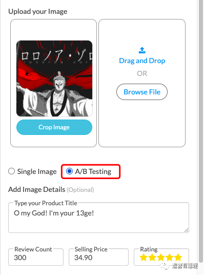 5、如果你想对比2张图片的效果,就需要选择“A/B Testing“