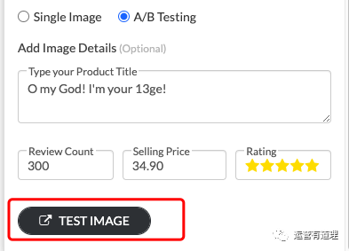 6、标题、评价数量、价格和评分,可以自定义,最后点击“TEST IMAGE“按钮就可。