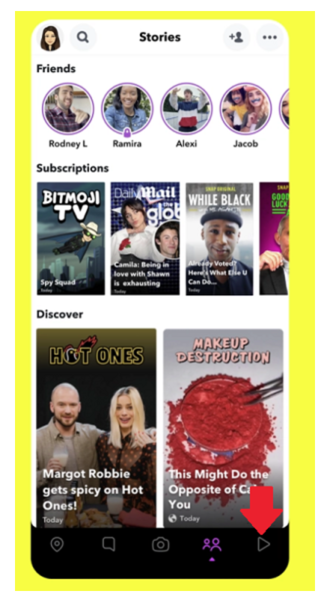 图注:Snapchat应用中的Spotlight功能入口(来源:socialmediatoday)