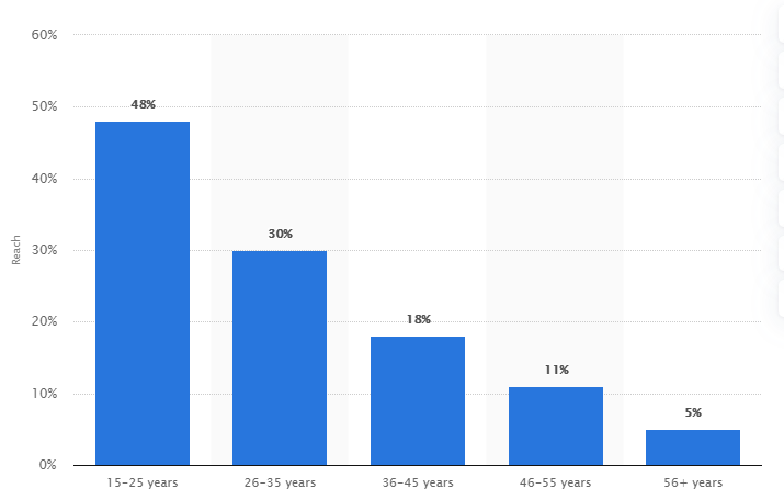 图注:Snapchat用户的年龄占比(来源:Statista)