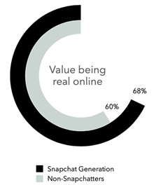 在互联网世界呈现真实的自我(来源:Snapchat report)