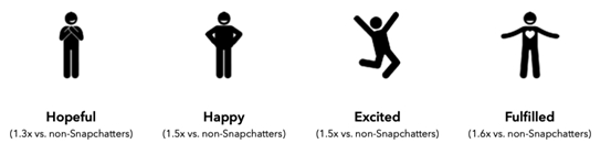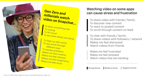 此次报告发现,Snapchat平台上发布的短视频内容往往能舒缓年轻用户的压力,让他们感受到快乐与创造力。然而,不少年轻人也表示,刷短视频也容易滋生一些消极情绪。