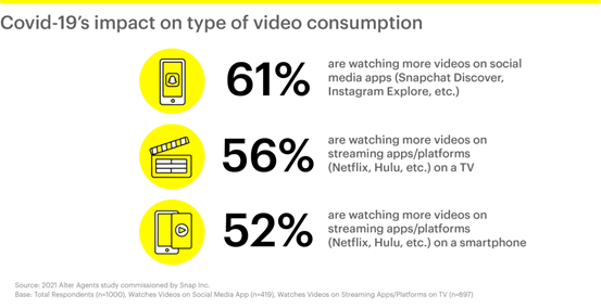 图注:疫情对视频消费类型的影响 (来源:Snapchat report)