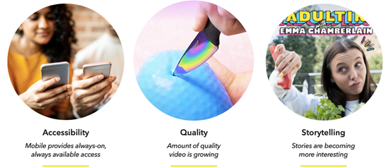 图注:短视频消费的三条原则(来源:Snapchat report)