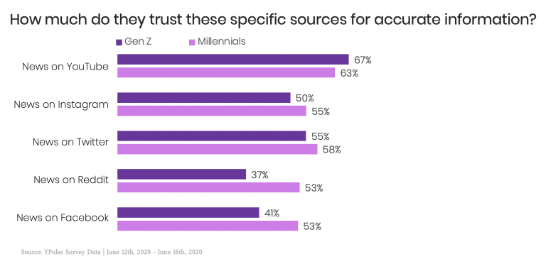 Z世代对社交媒体新闻真实性的信任度,低于千禧一代