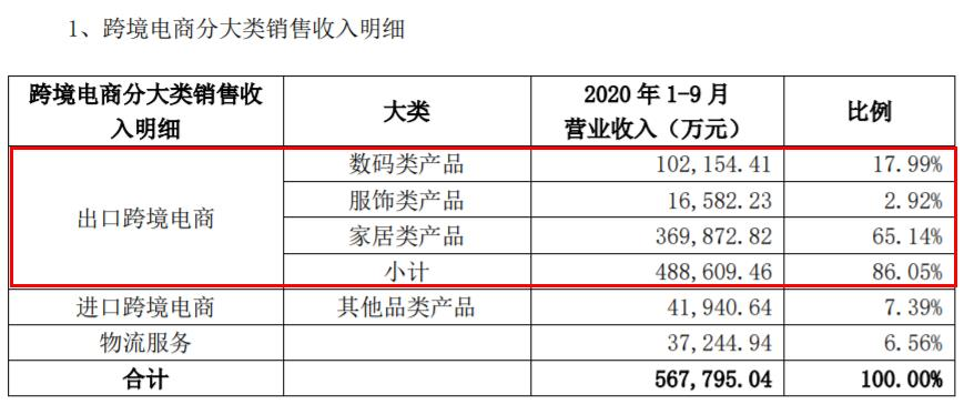 根据华鼎股份发布的2020年Q3季度报告,今年年初至报告期末(今年前三季度),华鼎实现营业收入约72.1亿元,本报告期末比上年度末营业收入增加22.15%。根据报告显示,通拓的跨境电商业务是华鼎营收的主要来源,达56.7亿元。
