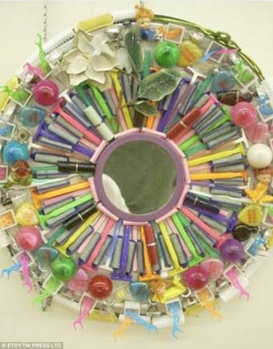 一位卖家刊登了用剃须刀做成的镜子:这个配色莫名的很小清新呢,如果不细看还挺好看的。