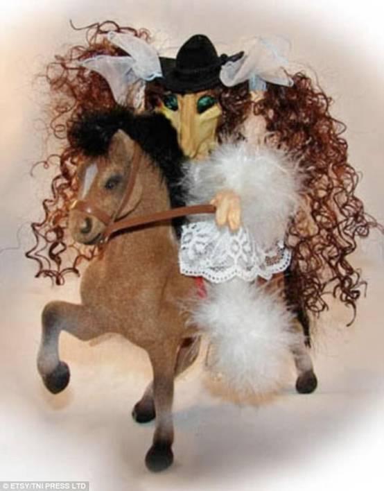 一位卖家竟然刊登一个外星人穿婚纱骑在马背上的手工艺品,所以这产品究竟是干啥用的?装饰?